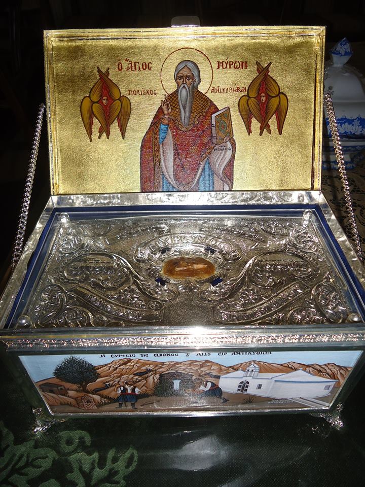 Παραλάβαμε σήμερα από την Ιερά Μονή Αγίων Πάντων Σπετσών το Ιερόν Λείψανον του Αγίου Μύρωνος πολιούχου των Αντικυθήρων και το Σάββατο του Λαζάρου (αύριο) θα μετακομισθεί στα Κύθηρα με το δρομολόγιο των 10:00 από Νεάπολη.