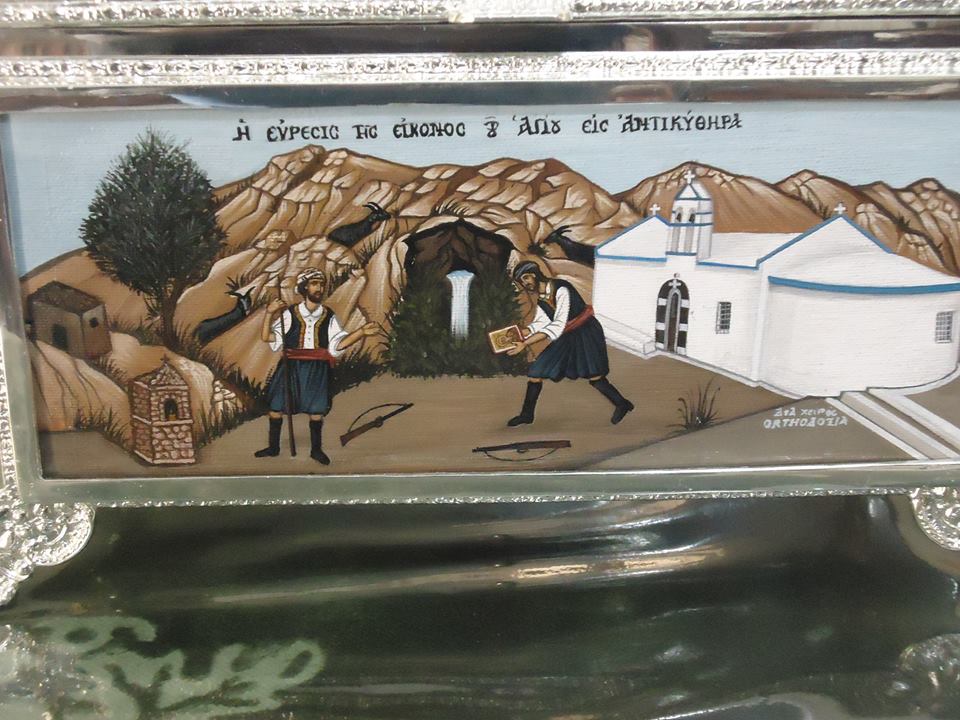 Στο λιμένα Διακοφτίου Κυθήρων το υπεδέχθη ο Σεβασμιώτατος Ποιμενάρχης μας κ. Σεραφείμ, ο οποίος φανερά συγκινημένος ομίλησε σχετικά και στη συνέχεια τελέστηκε σύντομος δέησις. Εν συνεχεία μετεφέρθη στον Μητροπολιτικό Ιερό Ναό Εσταυρωμένου στη Χώρα (ηδη από την Κυριακή της Ορθοδοξίας φιλοξενείται στον Μητροπολοτικό Ναό η Θαυματουργή Εικόνα της Μυρτιδιώτισσας) όπου τέθηκε σε προσκύνηση, ενώ από αύριο θα ξεκινήσει η μεταφορά του σε όλες σχεδόν τις ενορίες των Κυθήρων, κατά το πρόγραμμα του Σεβασμιωτάτου Μητροπολίτου.