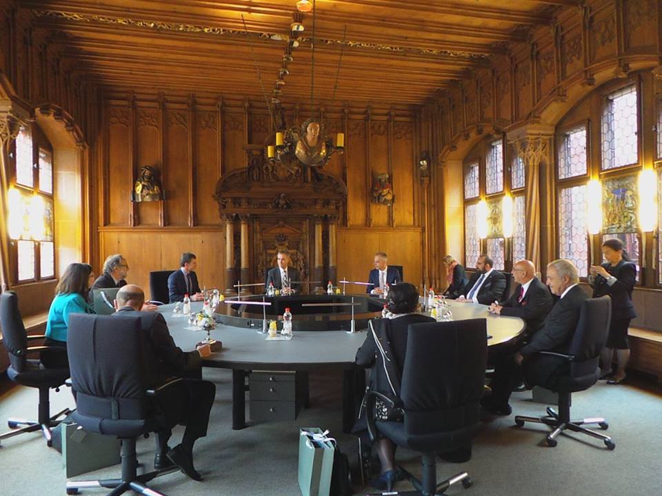 Ο Πρόεδρος της Κυβέρνησης της Βασιλείας Dr. Guy Morin υποδέχθηκε τους Έλληνες προσκεκλημένους στο Δημαρχείο, τους ξενάγησε στην εκπληκτική αίθουσα του Κοινοβουλίου και στη συνέχεια όλοι μαζί συμπορεύθηκαν προς το Μουσείο Αρχαιοτήτων όπου έλαβε χώρα η επίσημη τελετή των εγκαινίων.
